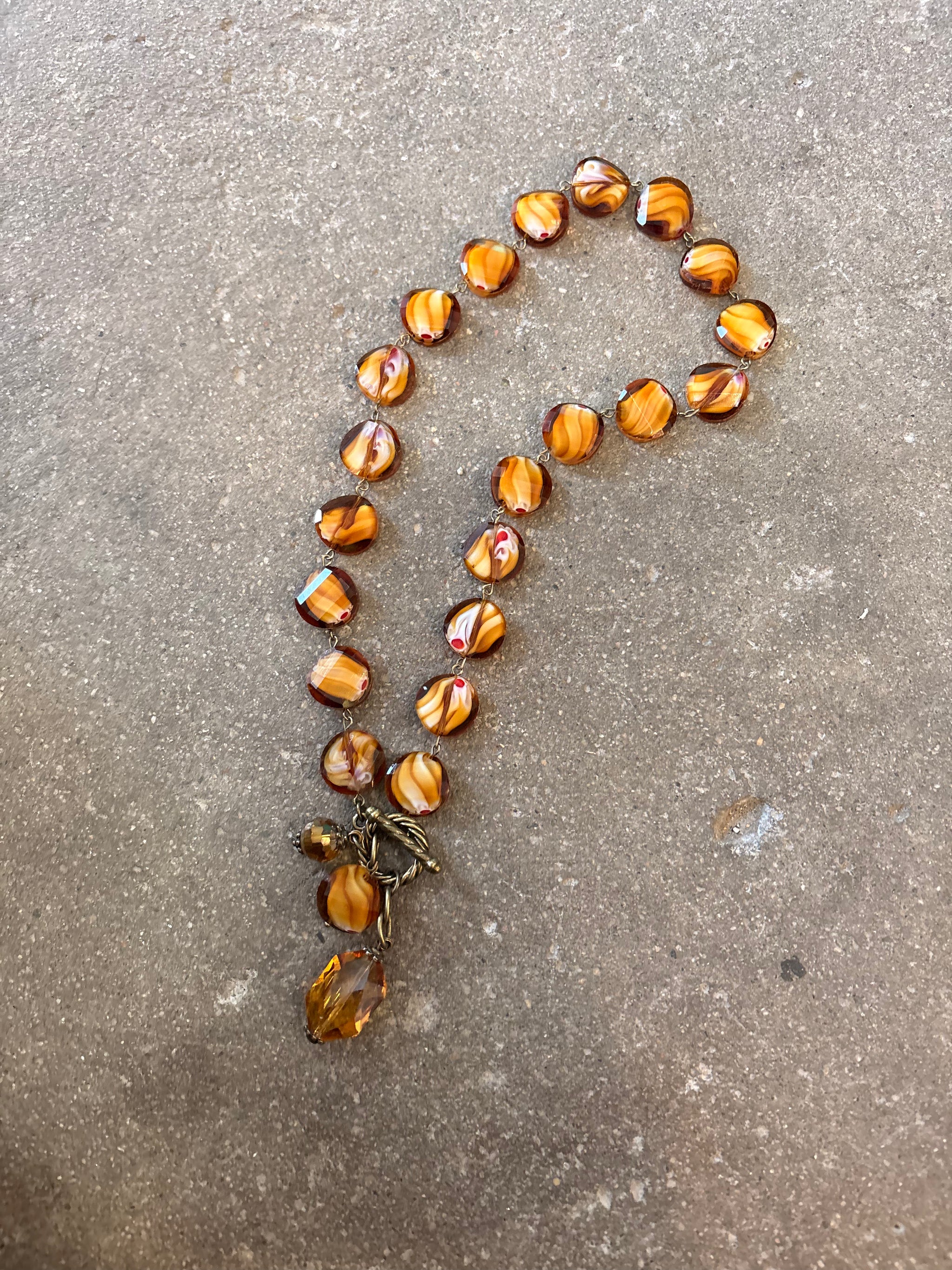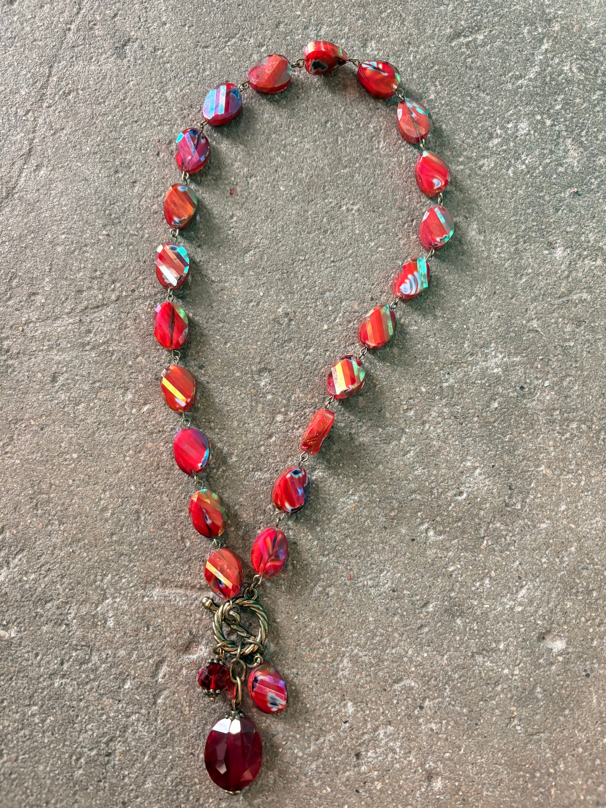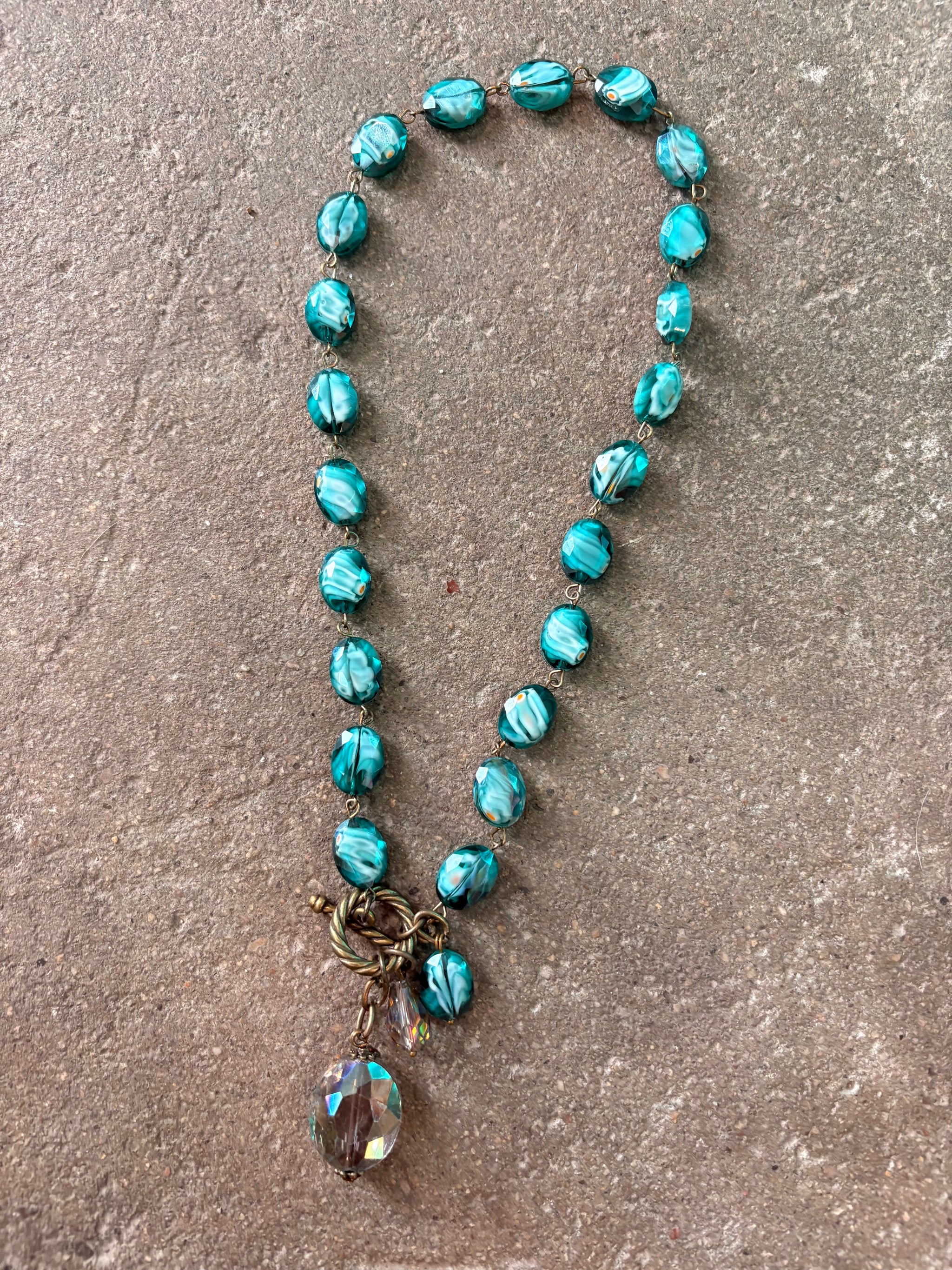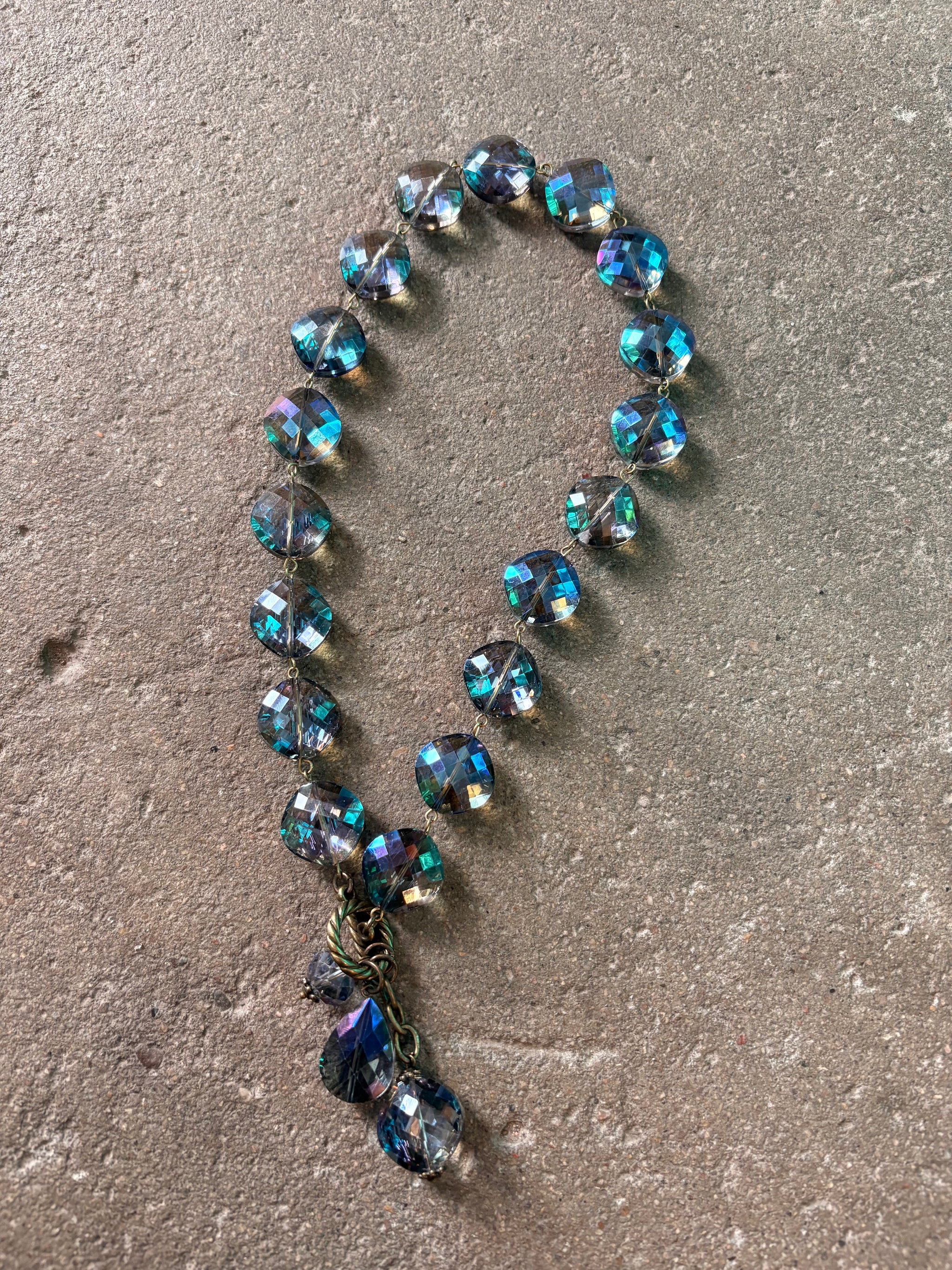 Mid Century Vintage Inspired Gorgeous Faceted Crystal Beaded Toggle Necklace w/ Dangle Crystals Brass Hardware 20" Necklace Available In Multiple...
