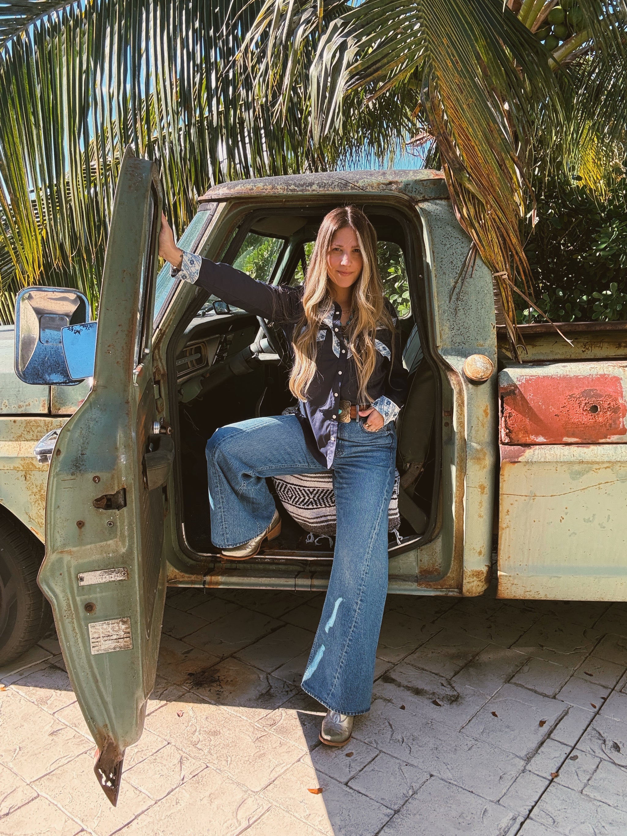Western Pearl Snap Button Up Top Rusty Brown w/ Mustard Floral Detail Mustard Piping Detail Chest Pockets w/ Pearl Snaps...