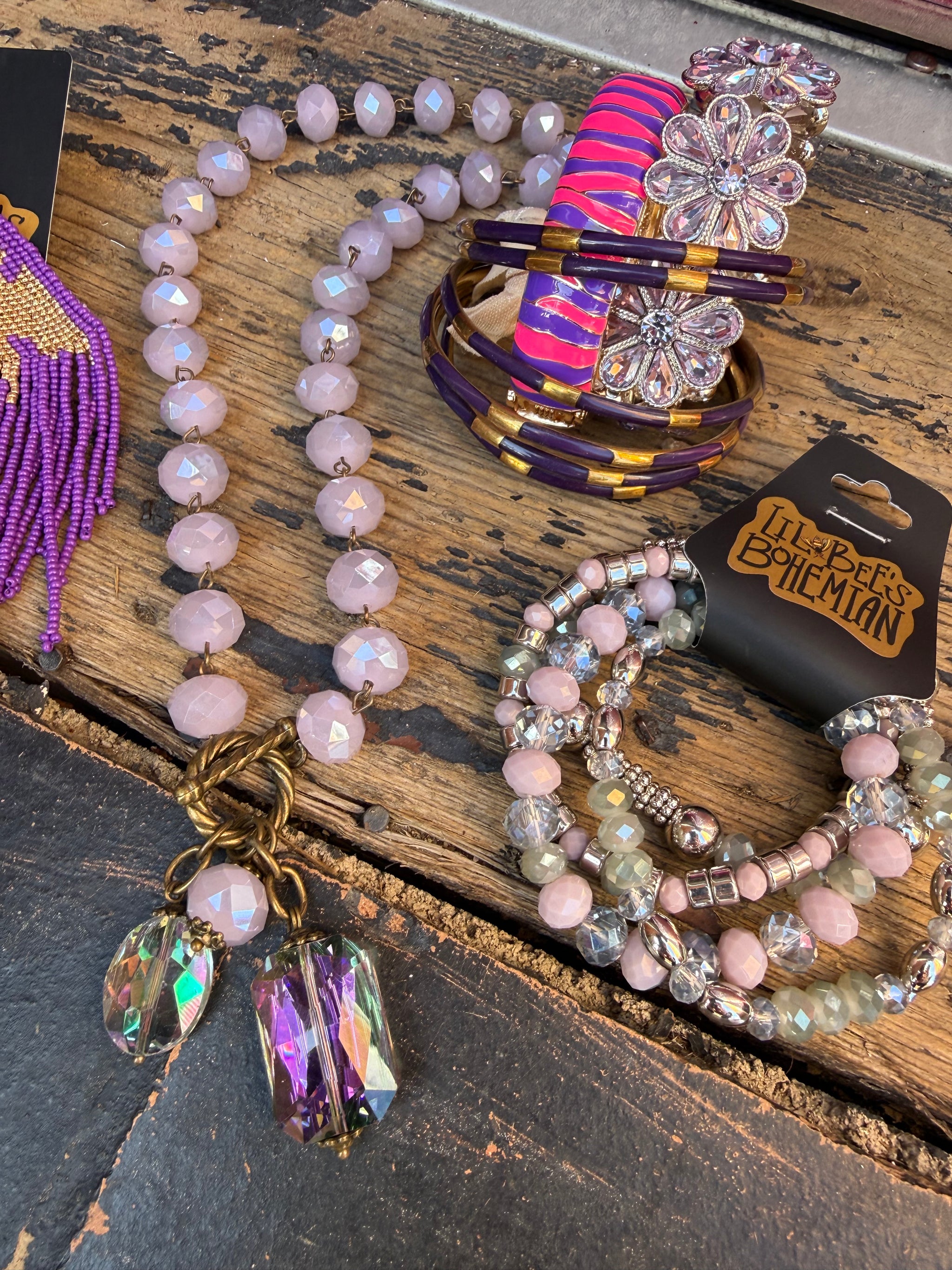 Lavender Haze Jewelry Set - 6 Item Set -($224 Value If Bought Separately) Includes: Blossom Loop Glass Crystal Flower Stretch...