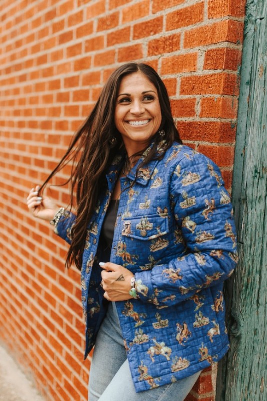 Quilted Western Print Jacket Oversized Quilted Shacket Classic Western-Themed Illustrations Button Front Slanted Pockets 100% Rayon Sizing Recommendations Small 0/2/4...