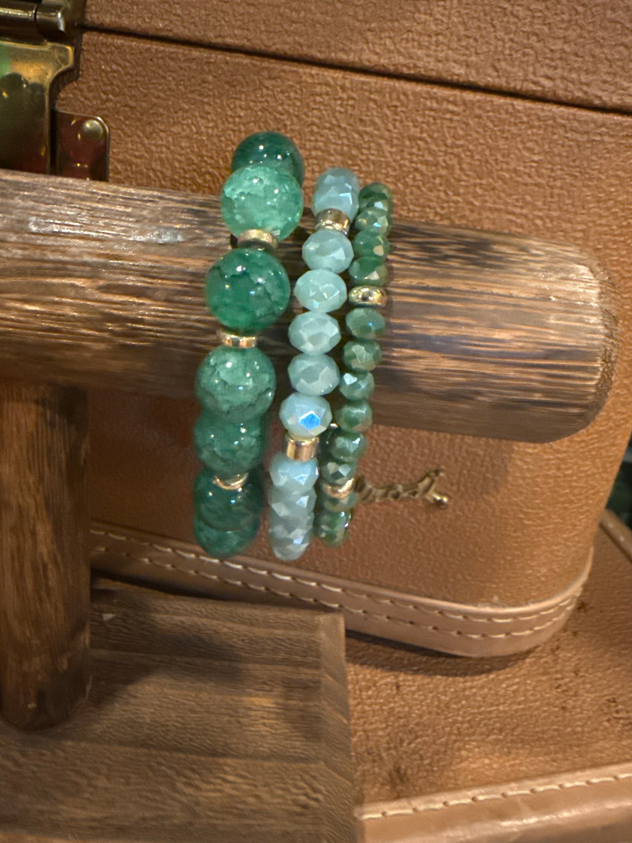 Bracelet Sets Set Of 3 Stretchy Style Bracelet Crystal Beads Four Color Options Gold Details