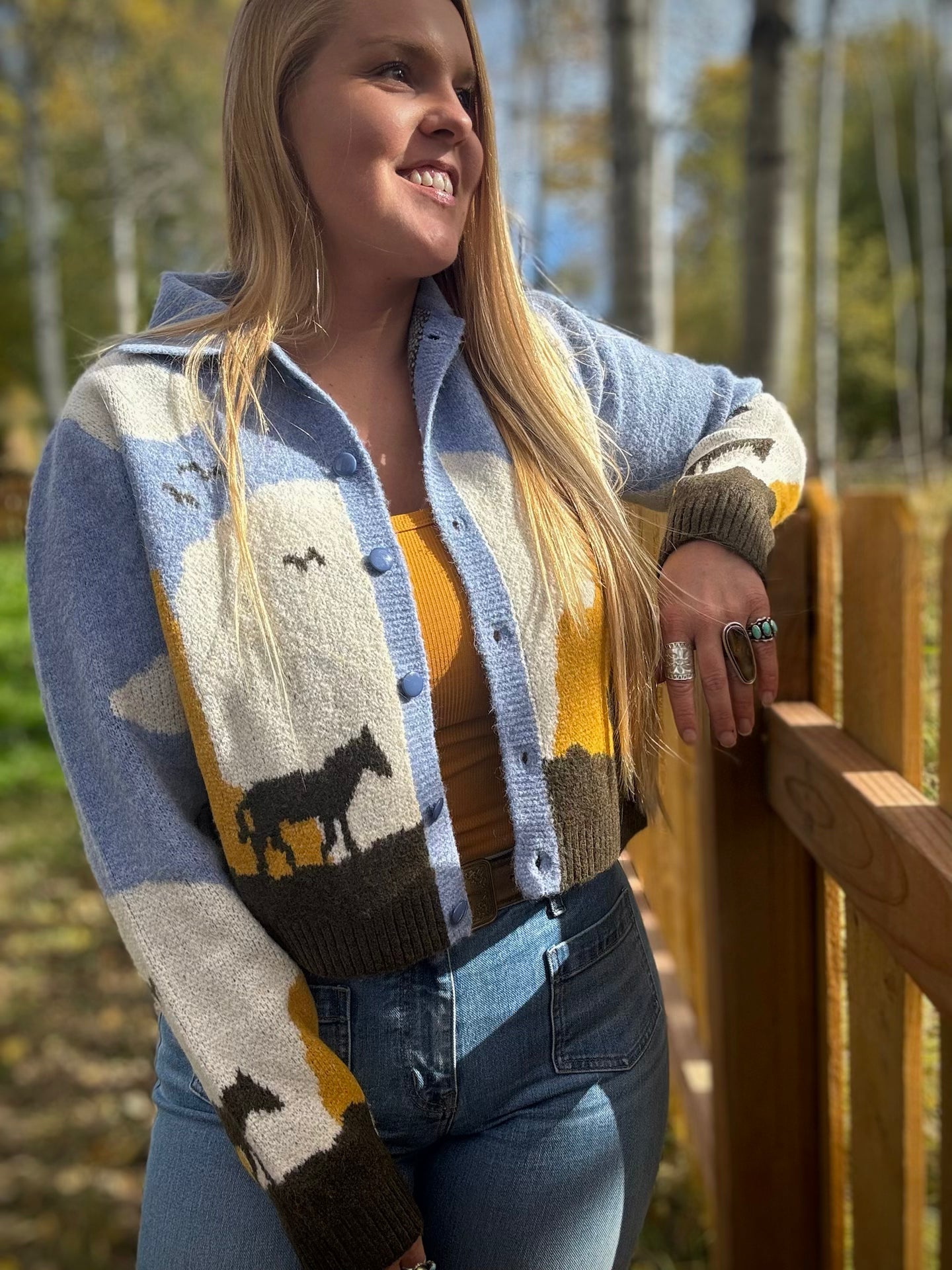 – Sold OutWestern Button Down Cardigan Long Sleeve Western Horse Print Design Soft Sweater Cardigan V-Neck, 4 Front Buttons Sizing Recommendations Small...