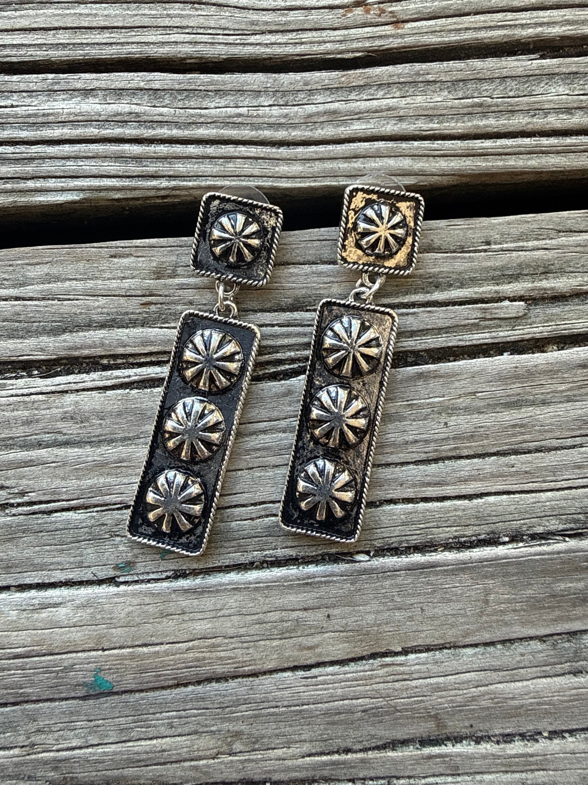 Boho Concho Hat Pins/Earrings Comes In A Set Of 3 Pairs Concho Style 2 w/ Turquoise Stone, 1 Stamped Silver Seen...