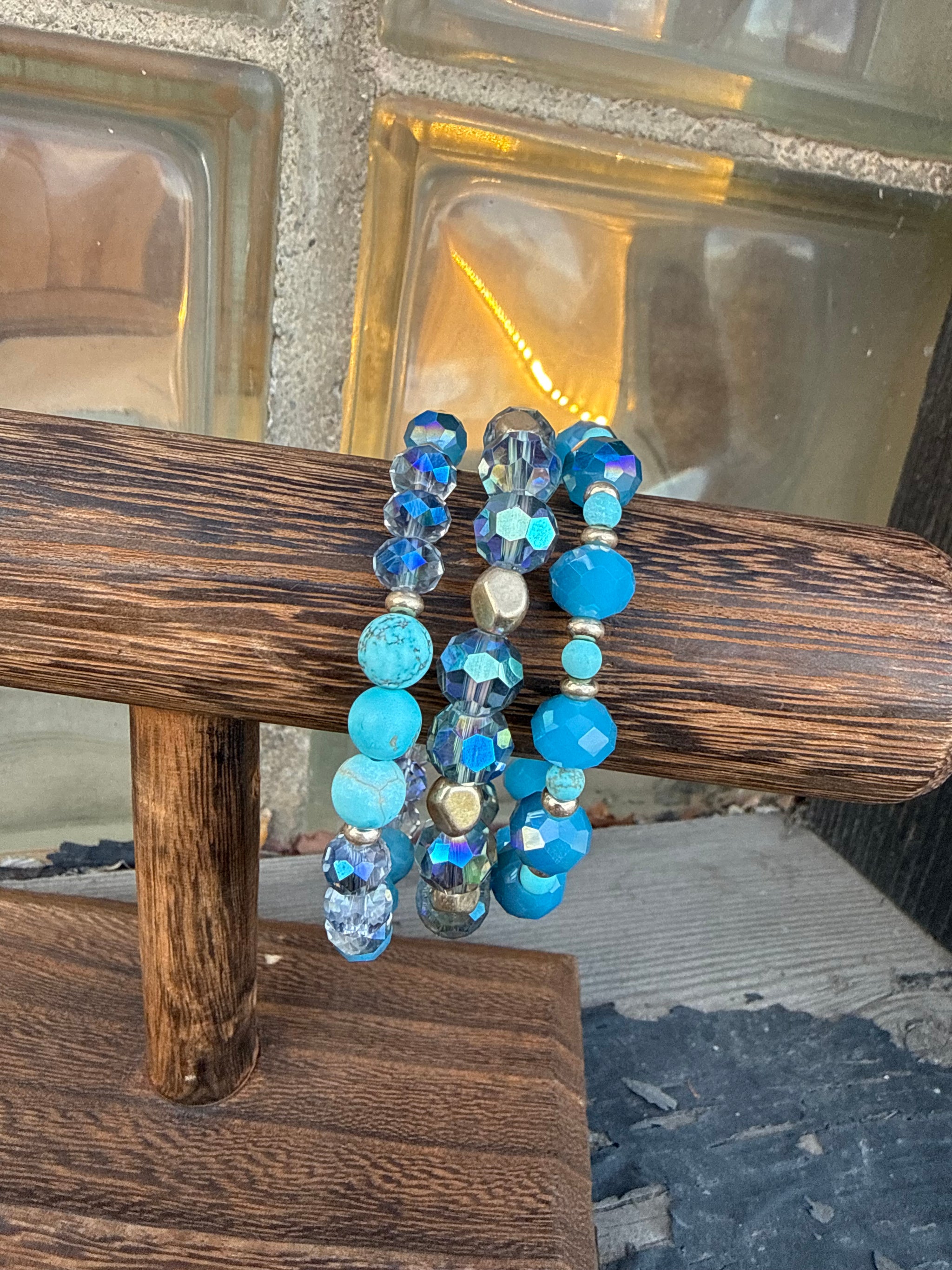 Beaded Bracelet Set A Beautiful Mix Of Sparkeling Colored Beads Stretchy Style Set of 4