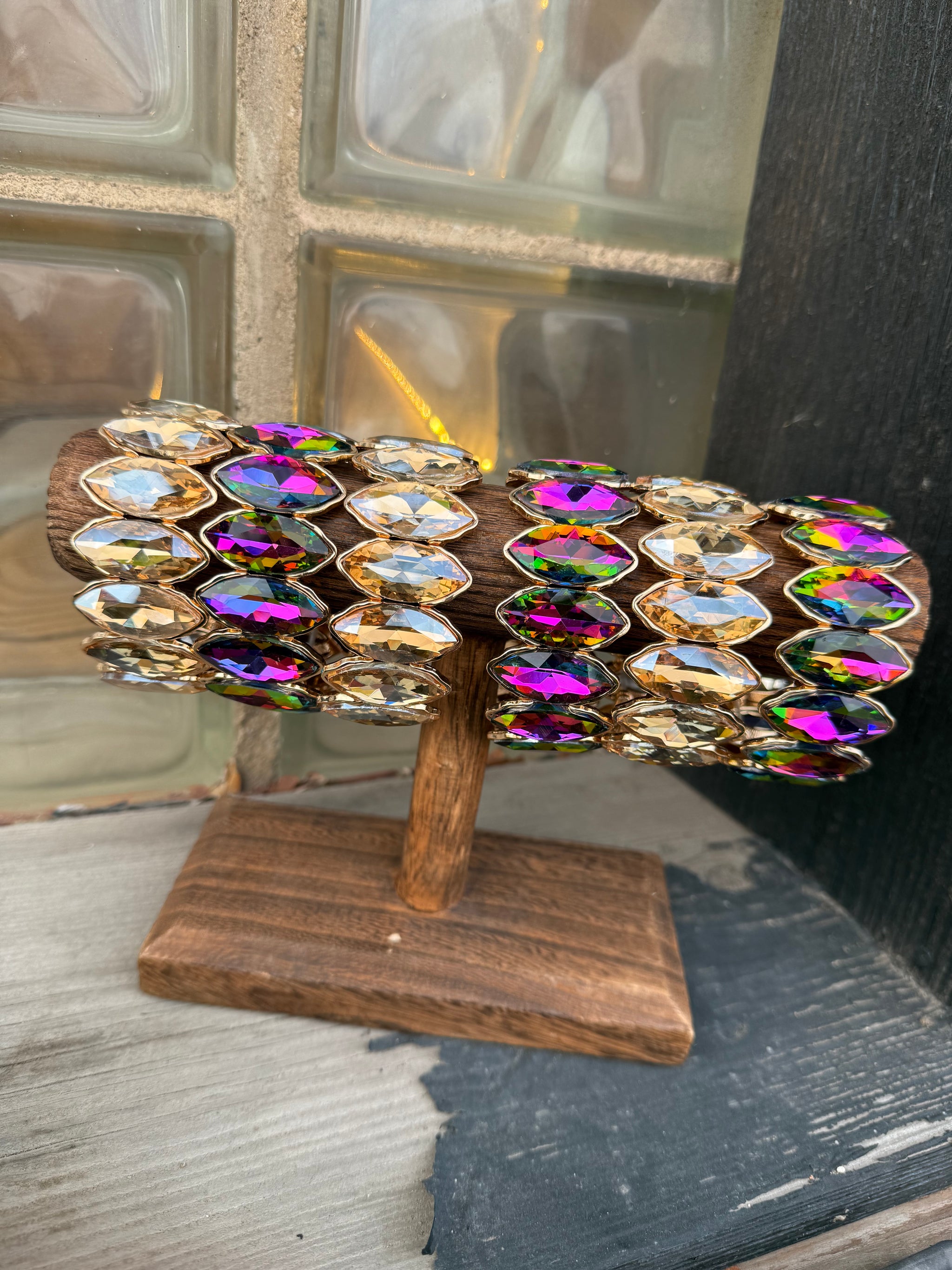 Crystal Edge Glass Stretch Bangle Shimmering Crystal Glass Set On A Highly Stretchable Band Comfortable Fit Sold Individually Perfect For...