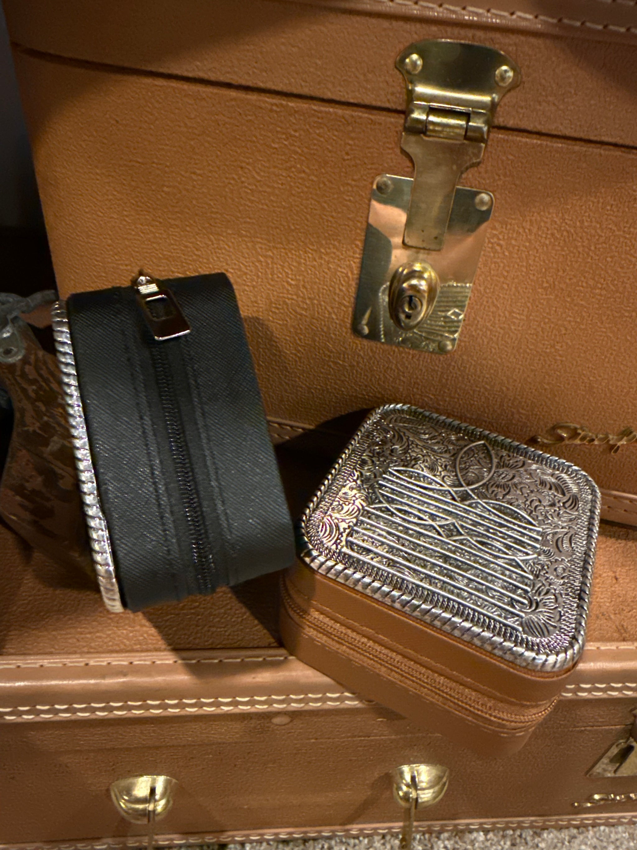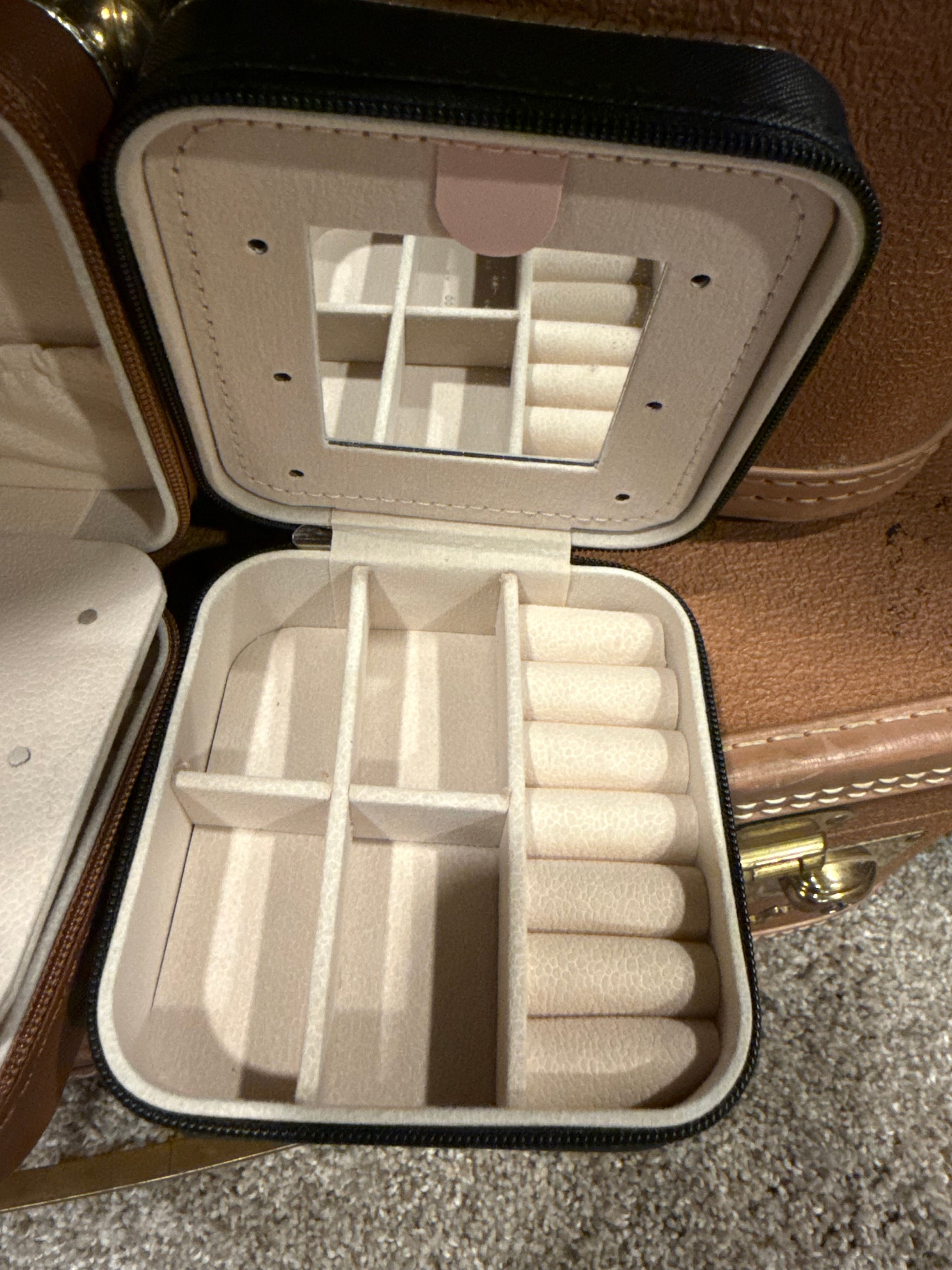 Travel Jewelry Box Metal Boot Stitch Top Felt Interior Multiple Compartments For All Types Of Jewelry Pieces Zip Closure 4"...