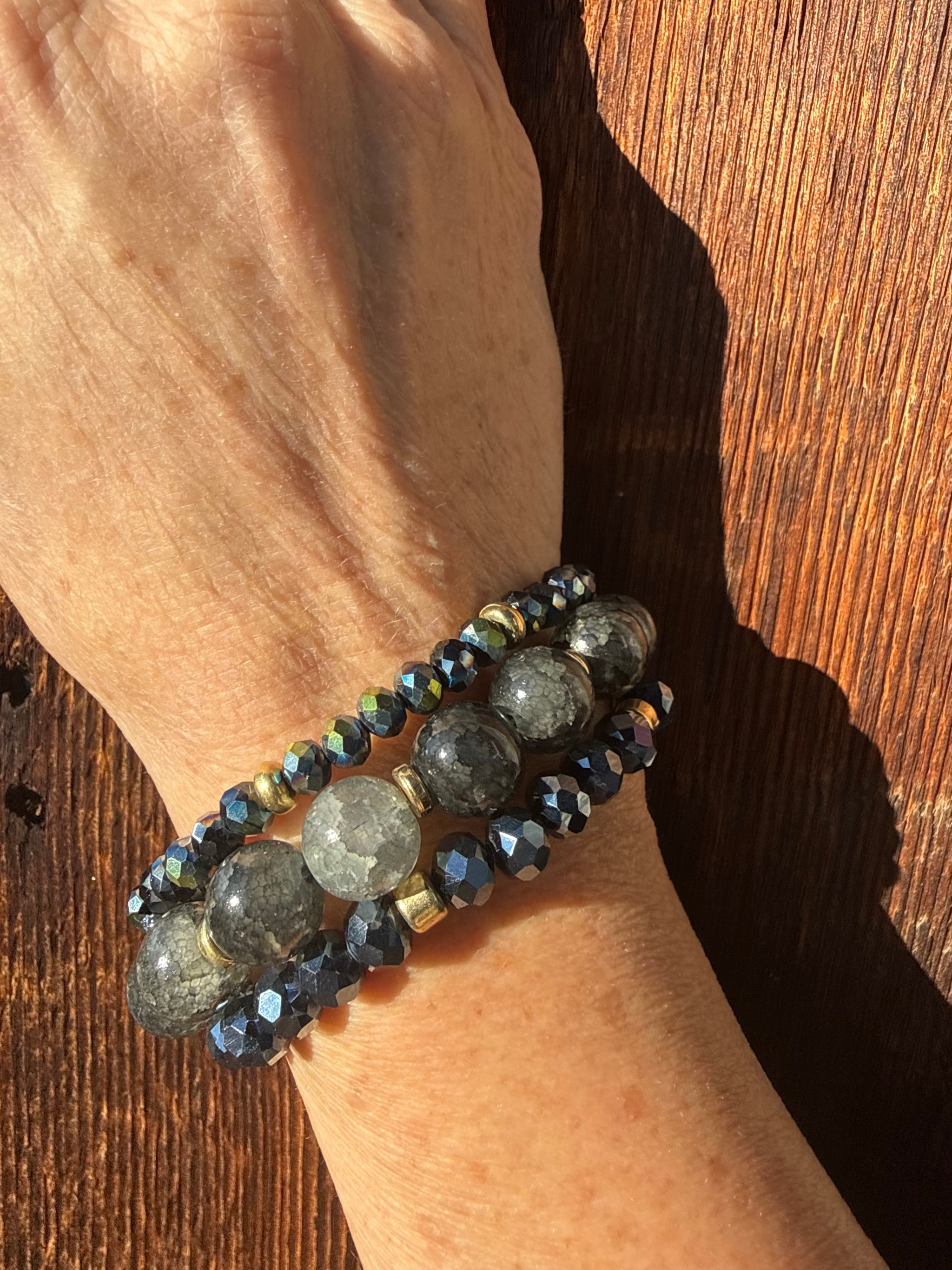 Beaded Bracelet Set Set Of 4 Available in Blue/Gold Mix & Light Purple/Silver Mix Stretchy Style OSFM