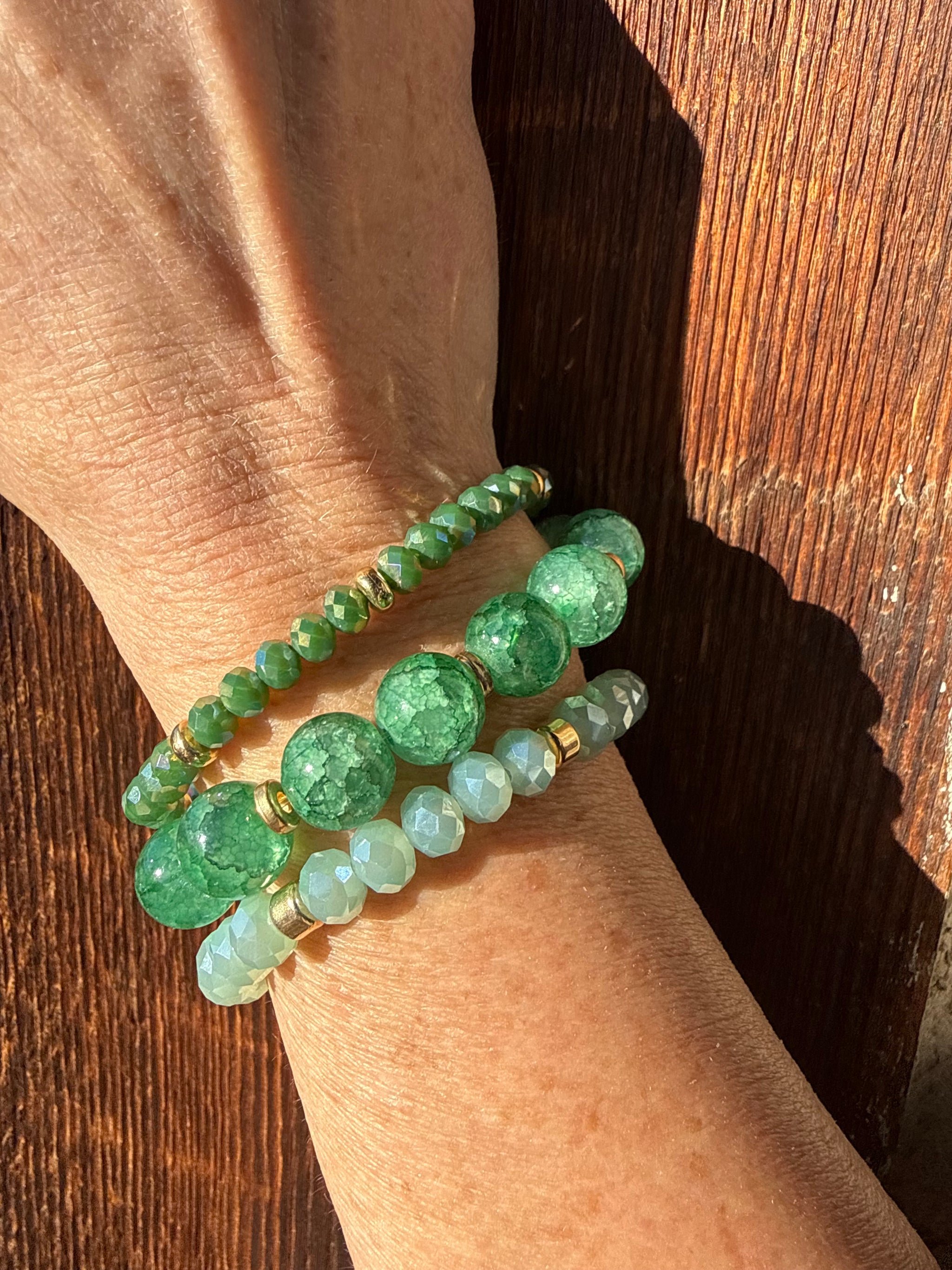 Beaded Bracelet Set A Beautiful Mix Of Colored Beads & Green Pearls Stretchy Style Set of 6