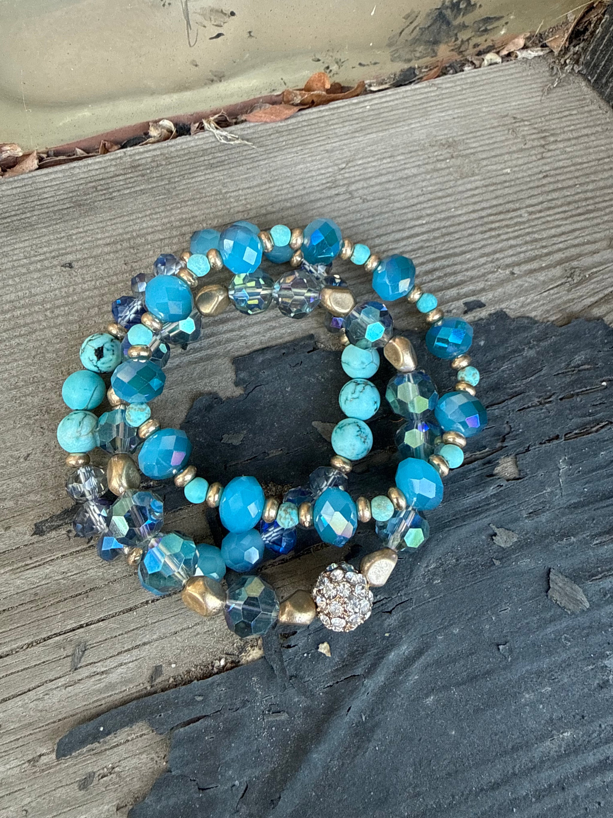 Bracelet Sets Set Of 3 Stretchy Style Bracelet Crystal Beads Four Color Options Gold Details