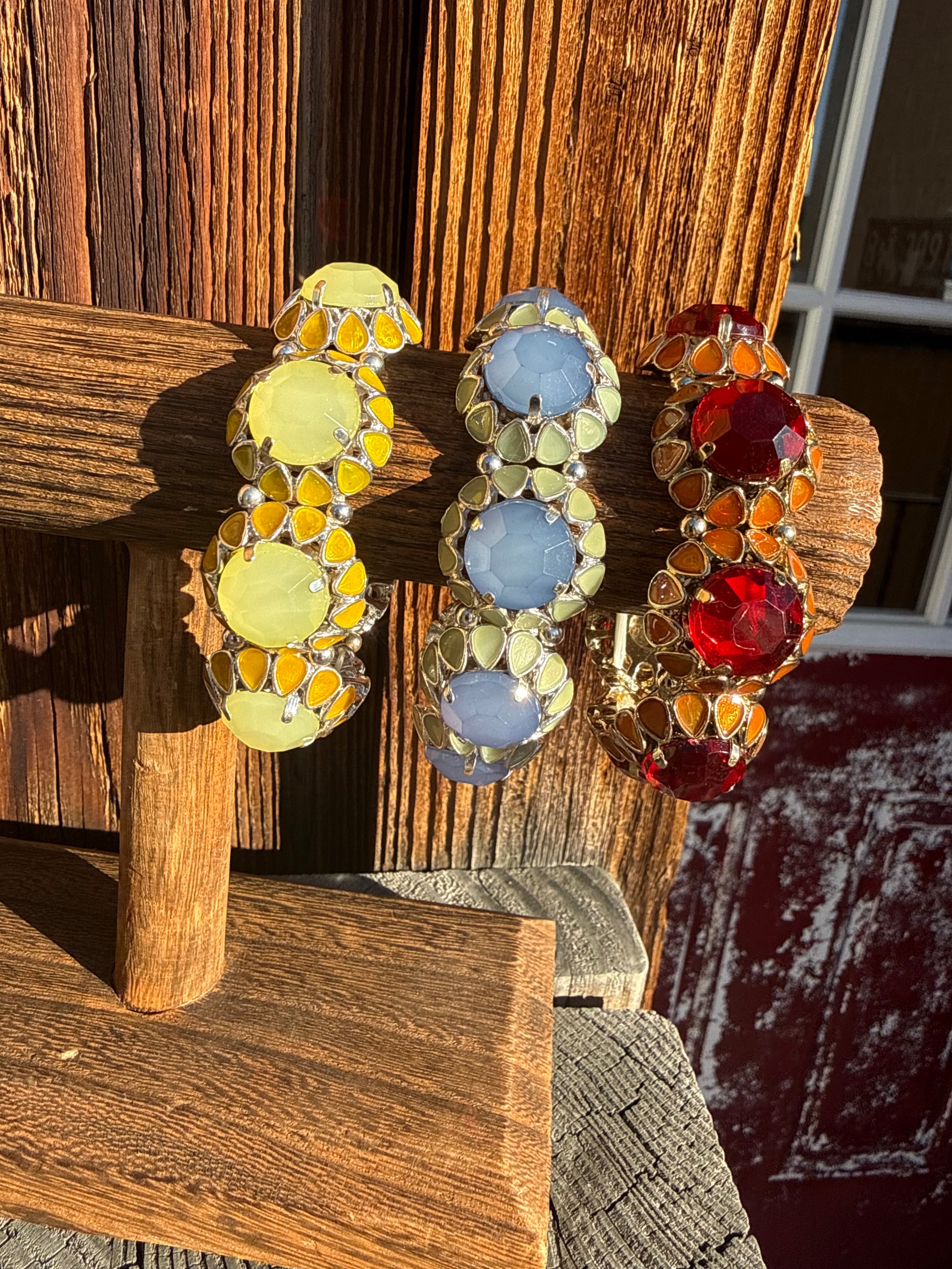 Gorgeous Chucky Style Enamel Cuff Bracelets Bamboo Style Colored Enamel & Gold Spring Style Pop Open Layers Well With Other...