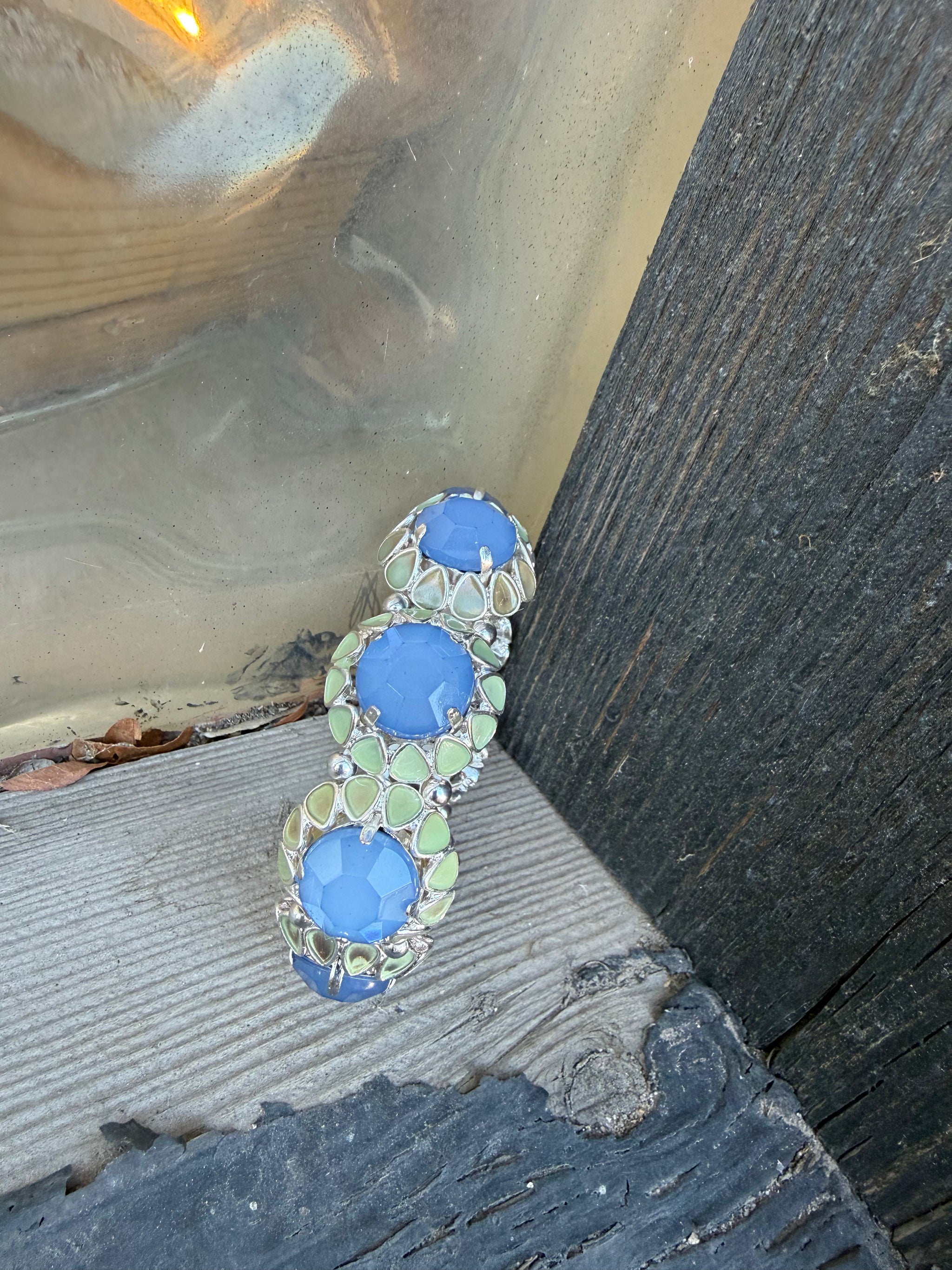 – Sold OutRose & Gem Stone Bracelet Gold Setting w/ Rope Detail Pyrex Greens Stretch Style Bracelet OSFM Sold Individually