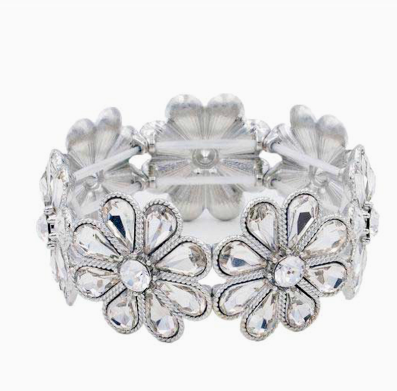 Linked Glass Crystal Flower Stretch Bracelet Stretchable Bracelet Layered Design Lead & Cadmium Safe Size: 3.5" Width, 2.25" Diameter Stretchable...