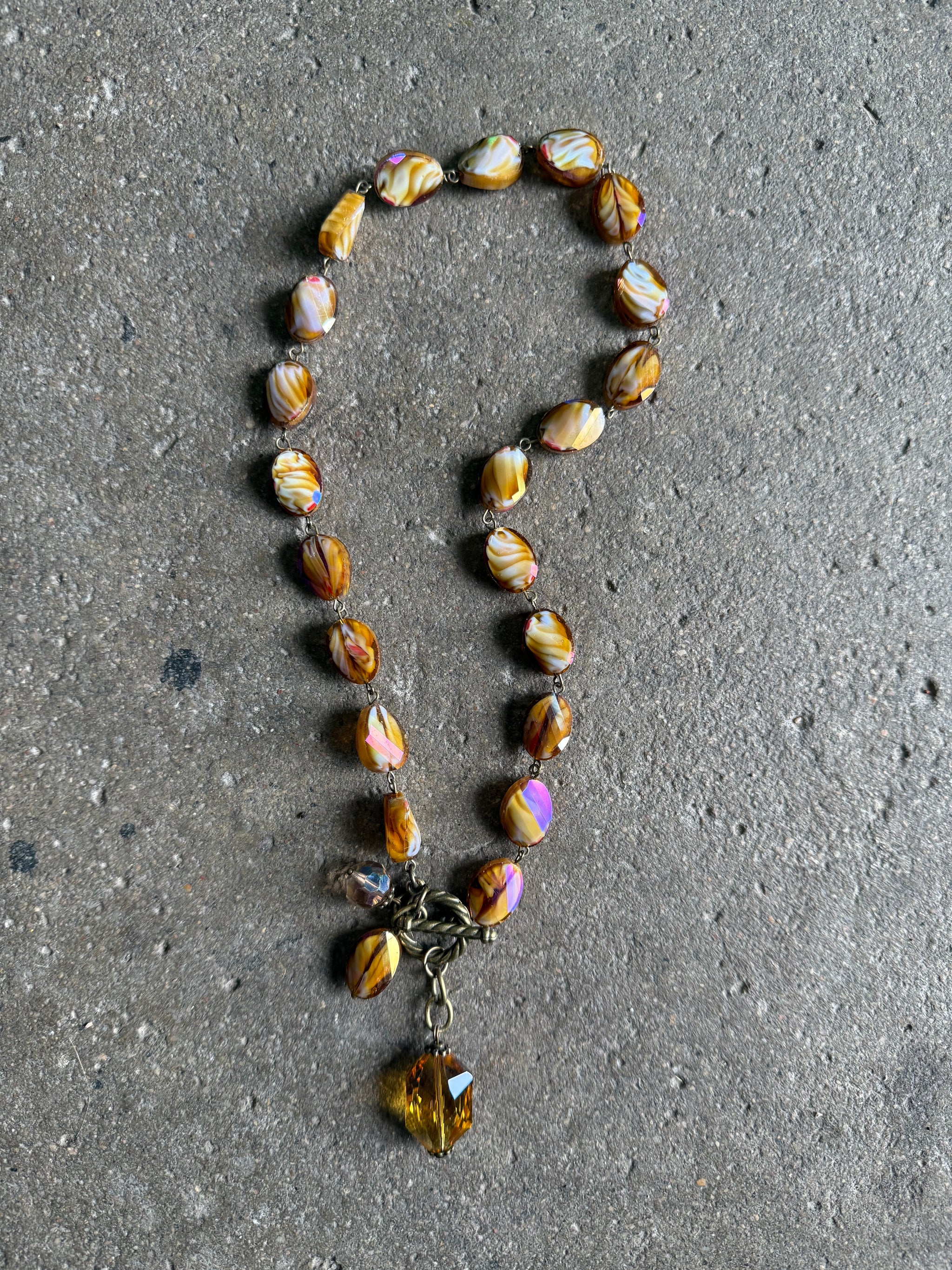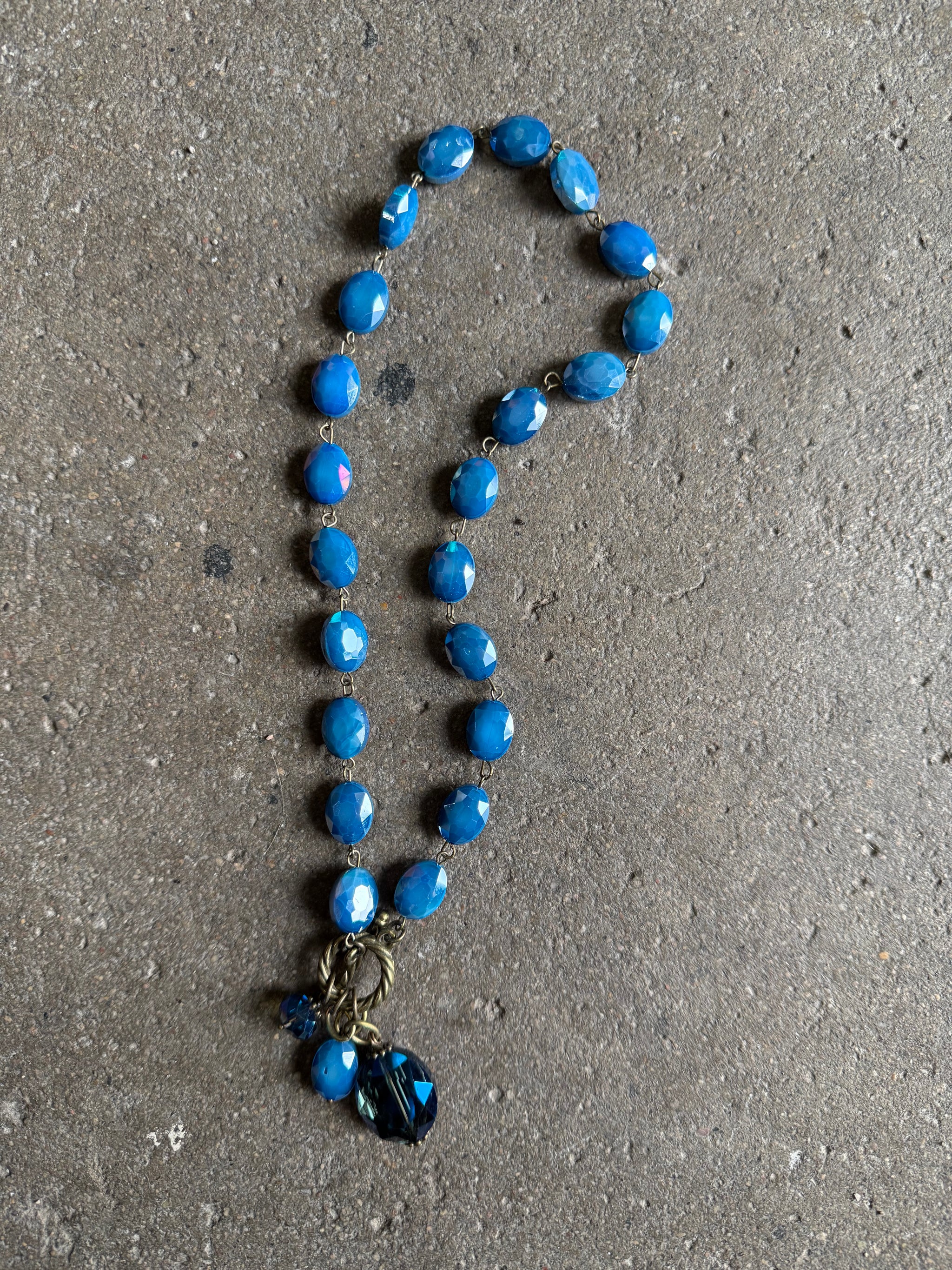 Mid Century Vintage Inspired Gorgeous Faceted Crystal Beaded Toggle Necklace w/ Dangle Crystals Brass Hardware 20" Necklace Available In Multiple...